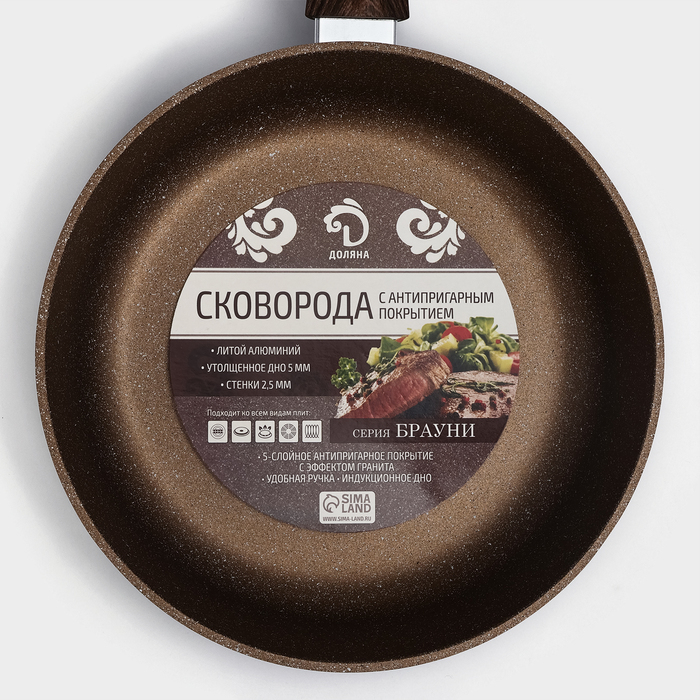 Сковорода Доляна «Брауни», d=26 см, съёмная ручка, стеклянная крышка, антипригарное покрытие, индукция