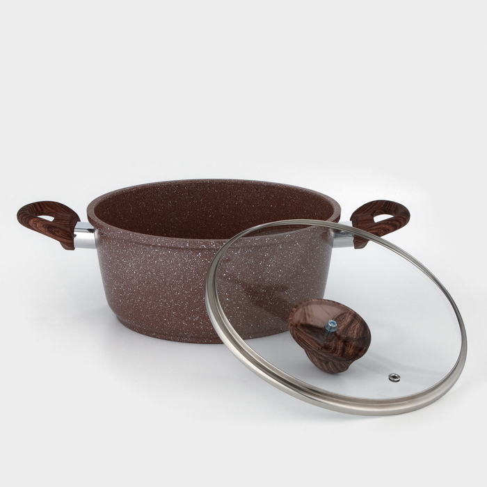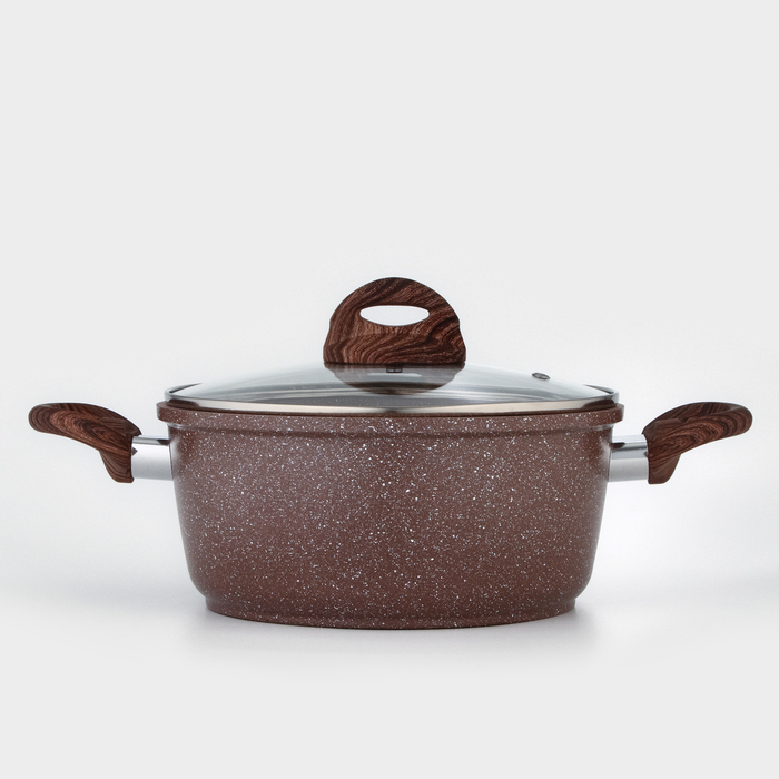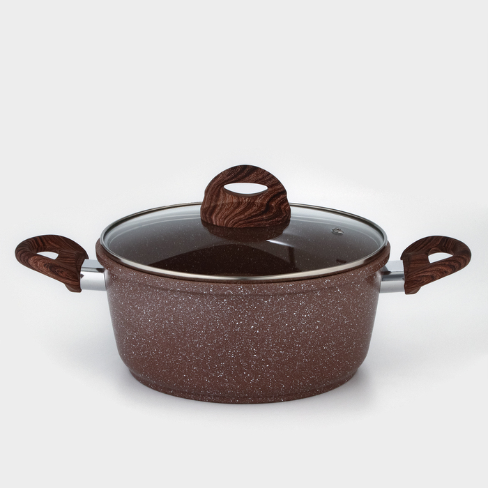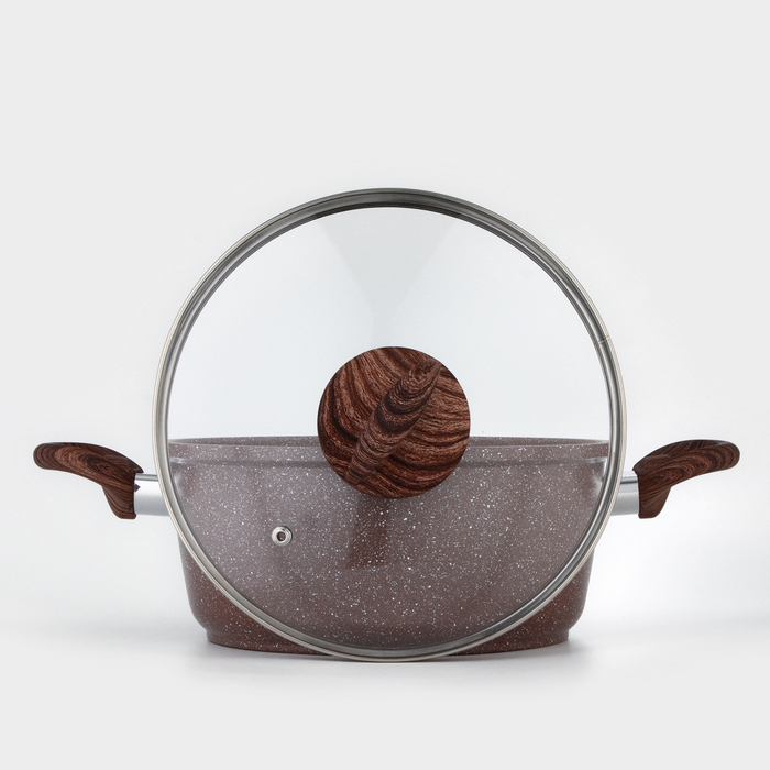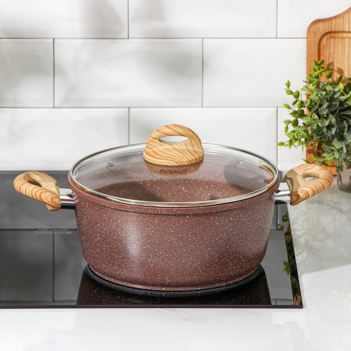Кастрюля Доляна «Брауни», 3,3 л, d=24 см, h=10 см, стеклянная крышка, антипригарное покрытие, индукция
