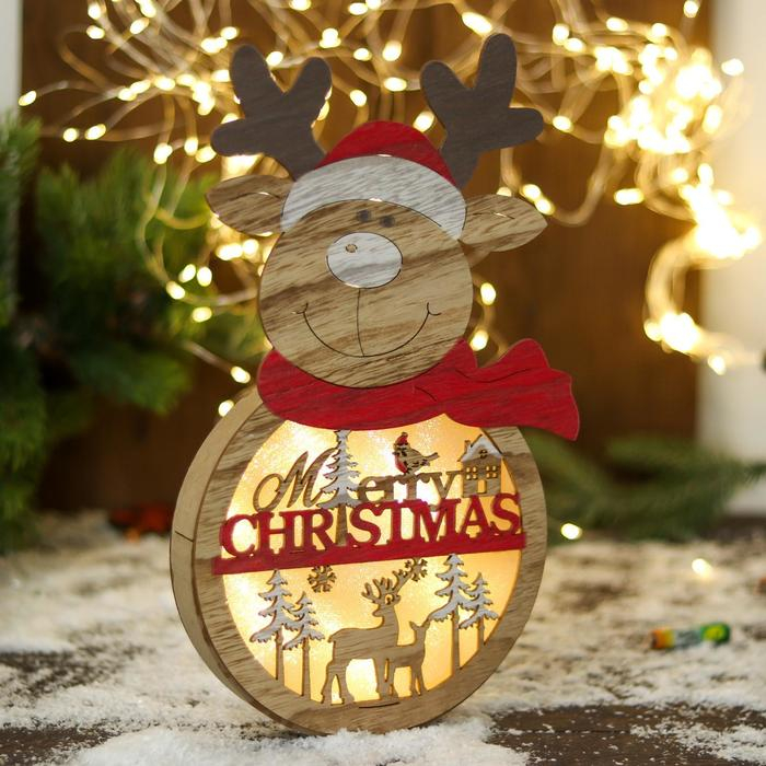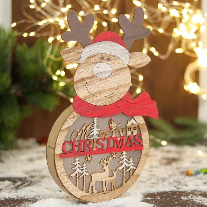 Украшение новогоднее свет "Олень в шарфике и пожеланием" 16,5х30 см