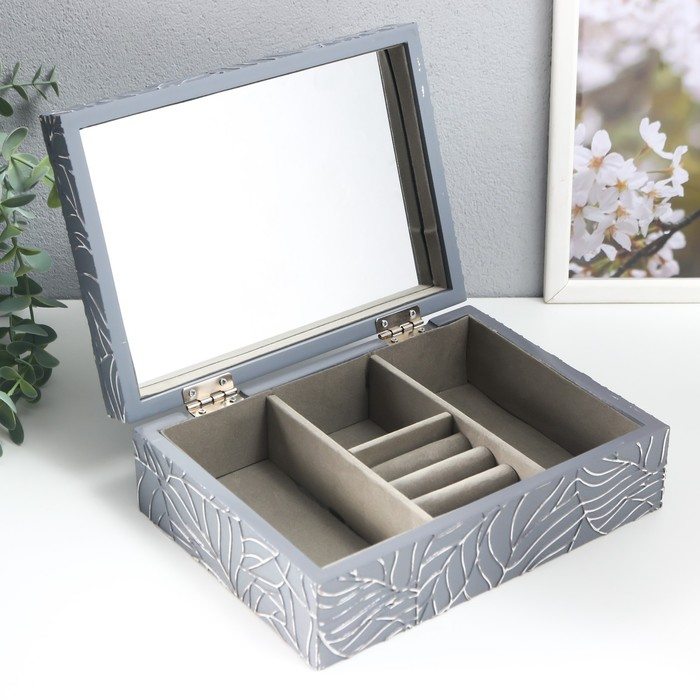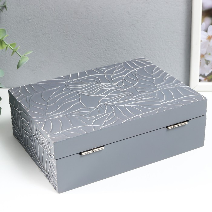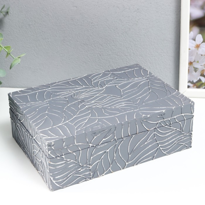 Шкатулка дерево для украшений "Листья на сером" 7х16,3х22,3 см
