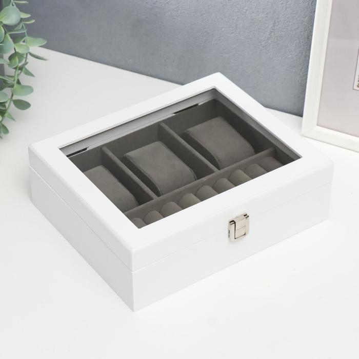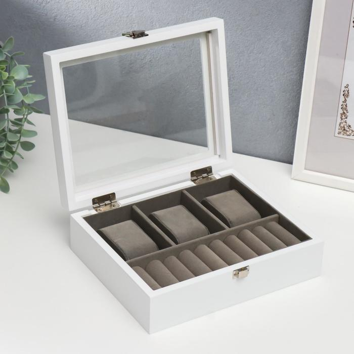 Шкатулка дерево под часы 3 деления и бижутерию "Белоснежная" 7,4х18х22 см