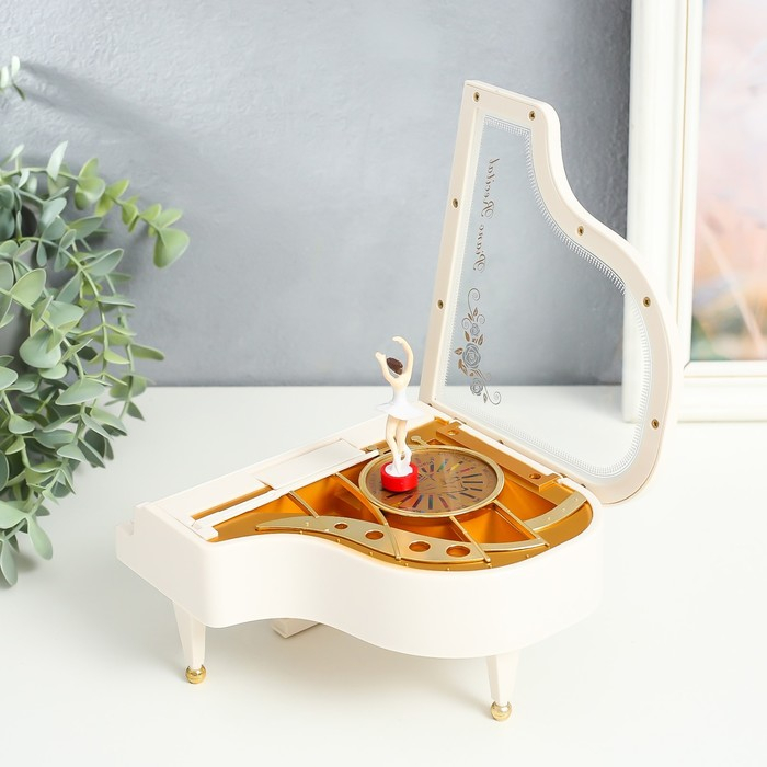 Шкатулка музыкальная механическая "Белый рояль" 16х15х9 см