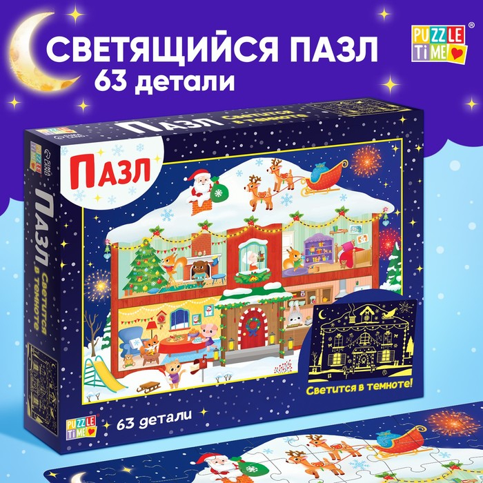 Светящийся пазл «Новогодние хлопоты», 63 детали