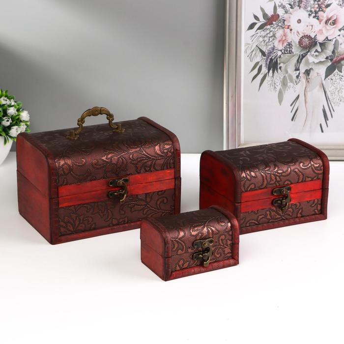 Шкатулка дерево сундучок набор 3 шт "Цветы" тиснение (5х6х7; 12,5х8,5х9 см) 18х13х13см