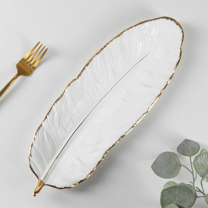 Блюдо керамическое сервировочное «Рапсодия. Лист», 36×12×4 см, цвет белый