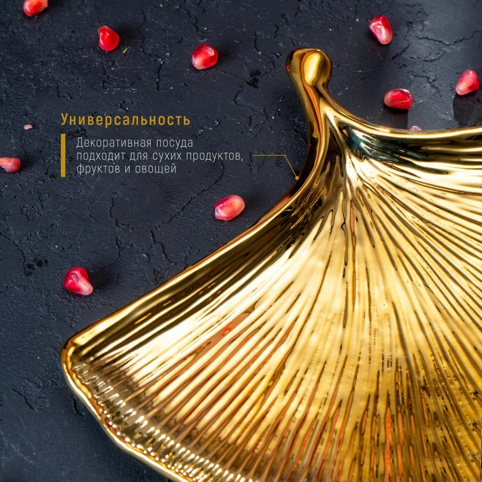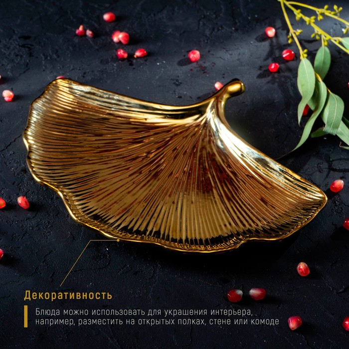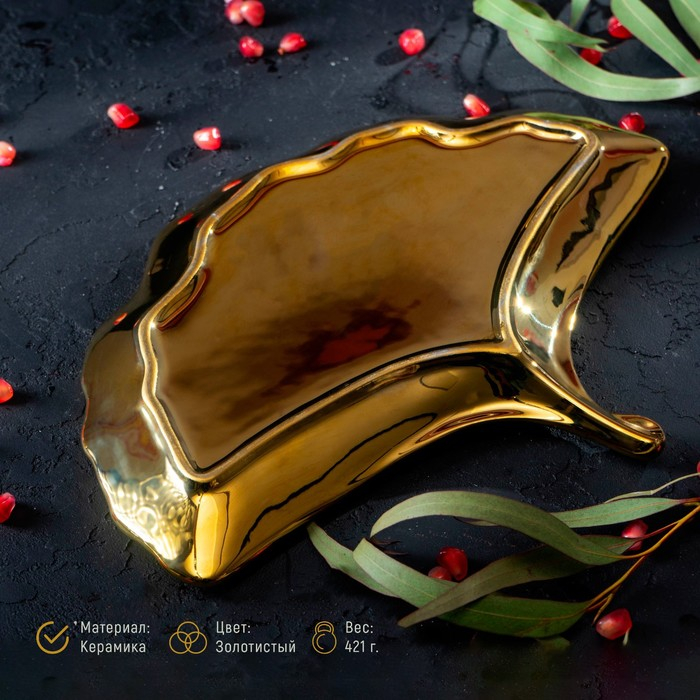 Блюдо керамическое сервировочное «Золотой лист», 23×23 см, цвет золотой