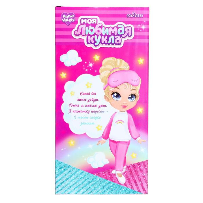 У куклы красивые волосы. Девочка расчешет их и сделает модную укладку. Мягкий пижамный костюм снимается. Ребёнок может искупать куклу и уложить её спать.
