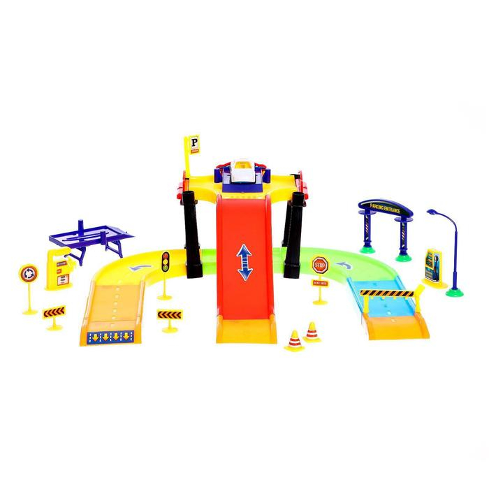 Машинки можно припарковать на 1-ом и 2-ом этаже гаража, в комплекте есть дорожные знаки и указатели. Благодаря им игра с машинками станет ещё увлекательнее и разнообразнее. Также она поможет ребёнку освоить основные правила дорожного движения.