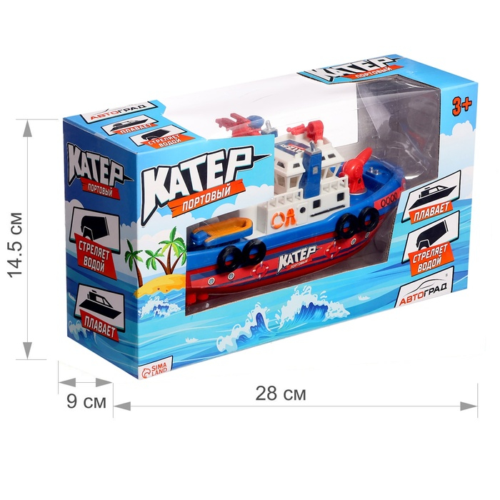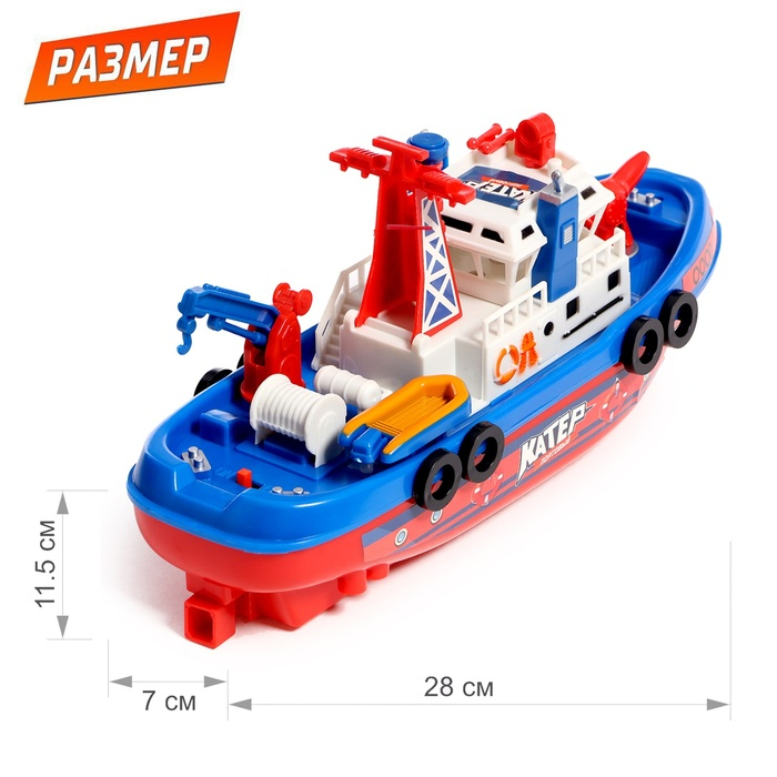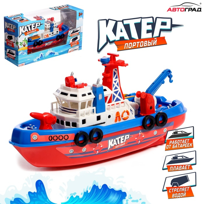 Катер «Городская Гавань», плавает, стреляет водой, работает от батареек