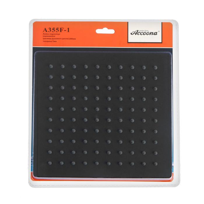Душевая лейка Accoona А355F-1, тропическая, черная, 20х20 см, нерж. сталь