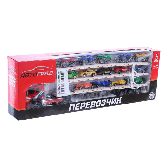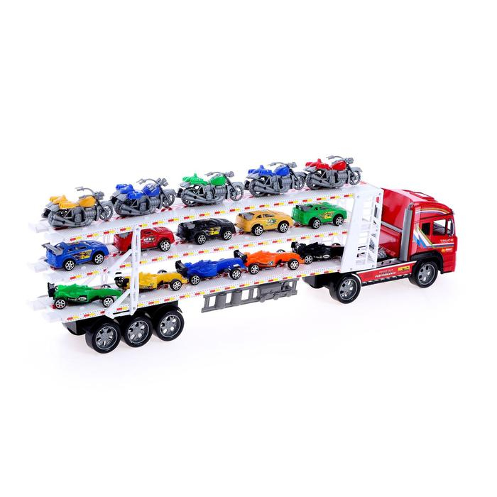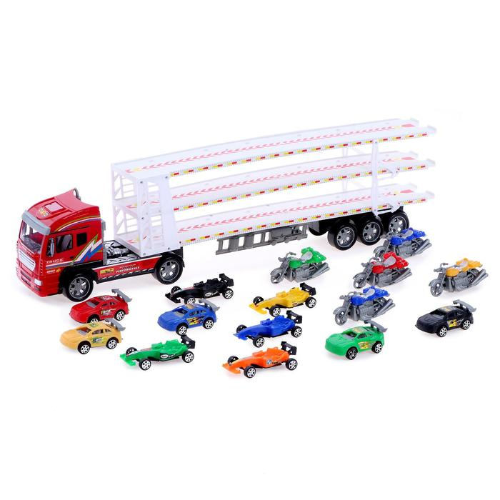 Грузовик инерционный «Автовоз», с 15 машинами и мотоциклами