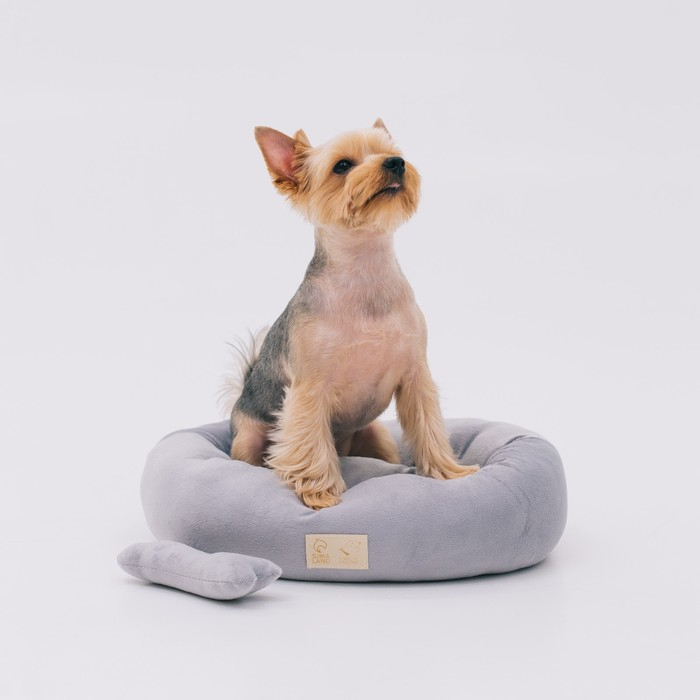 Лежанка подойдёт для собаки мелкой породы. Изготовлена из мягкого и тёплого плюша, наполнитель — синтепон. Набивка плотная, поэтому изделие хорошо держит форму и комфортно для питомца.