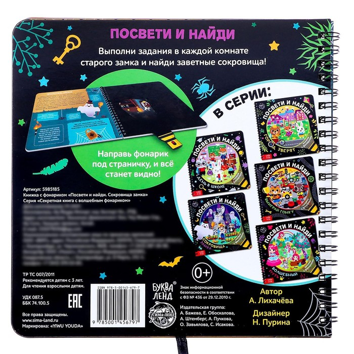 Секретная книга с фонариком «Посвети и найди. Сокровища замка»