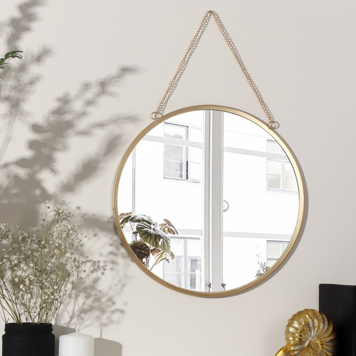Зеркало настенное «Отражение», d зеркальной поверхности 31 см, цвет матовое золото