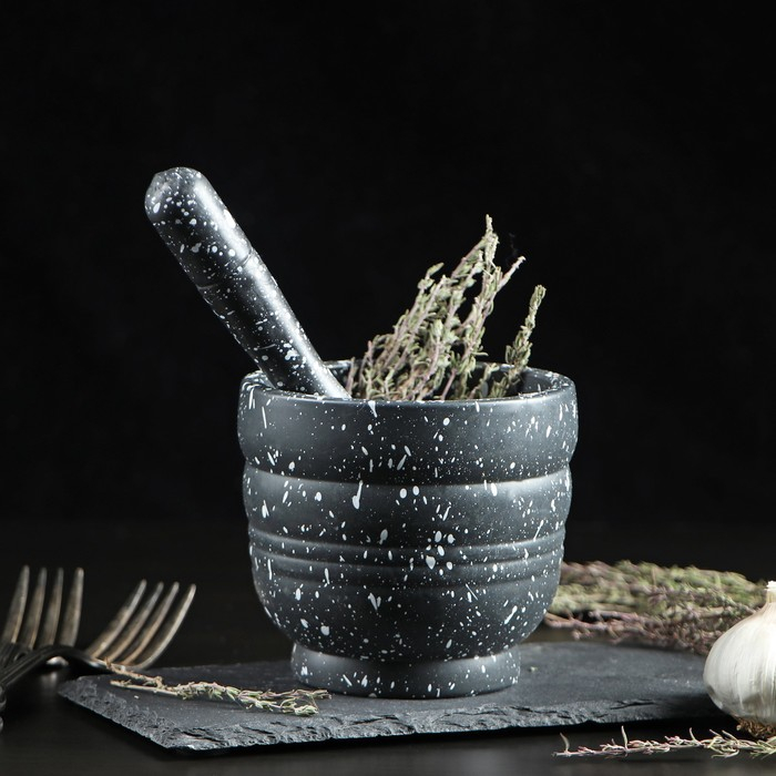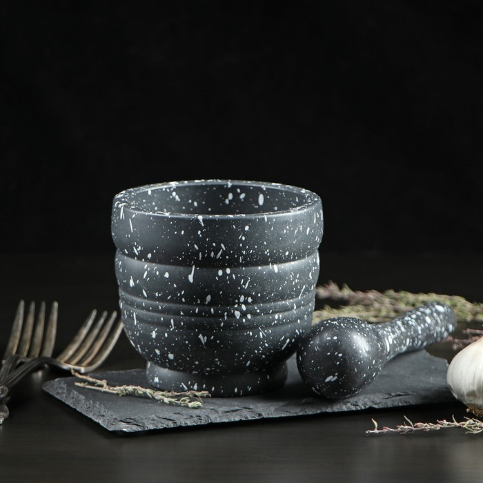 Ступка с пестиком Доляна «Чёрный камень», 250 мл, 9×10 см