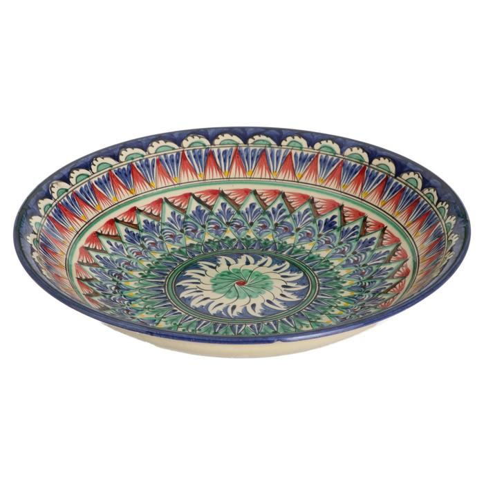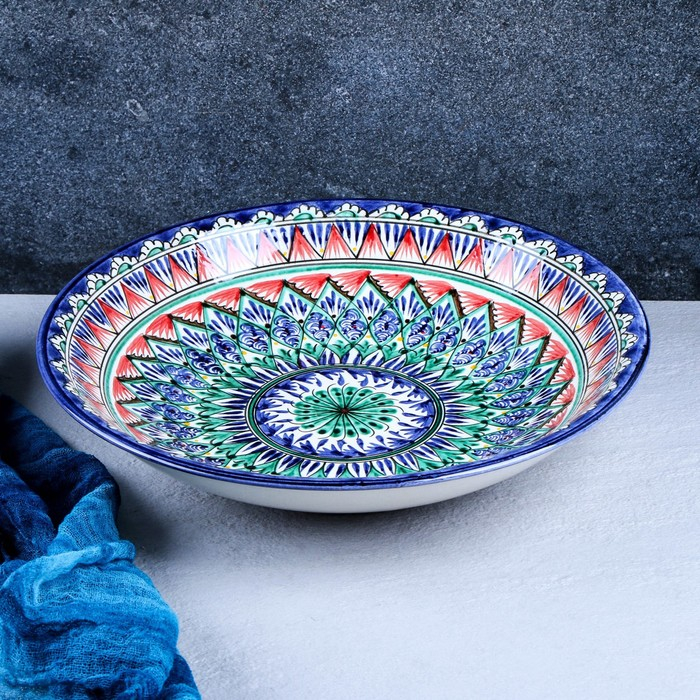Ляган Риштанская Керамика "Узоры", 33 см, синий микс, глубокий