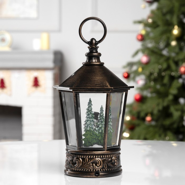 Светодиодная фигура «Дед Мороз у ёлки» 12.5 × 20 × 7.5 см, пластик, батарейки АААх3 (не в комплекте), USB, свечение тёплое белое
