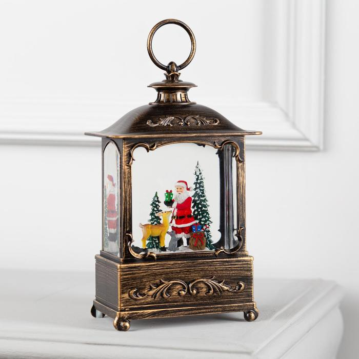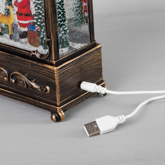 Светодиодная фигура «Дед Мороз у ёлки» 12.5 × 20 × 7.5 см, пластик, батарейки АААх3 (не в комплекте), USB, свечение тёплое белое