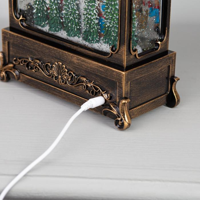 Светодиодная фигура «Дед Мороз у ёлки» 12.5 × 20 × 7.5 см, пластик, батарейки АААх3 (не в комплекте), USB, свечение тёплое белое