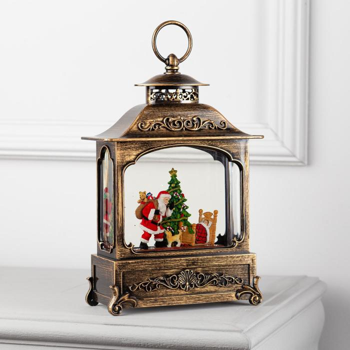 Светодиодная фигура «Дед Мороз у ёлки» 12.5 × 20 × 7.5 см, пластик, батарейки АААх3 (не в комплекте), USB, свечение тёплое белое