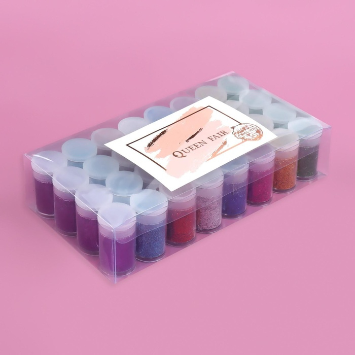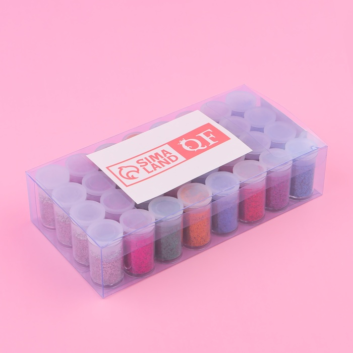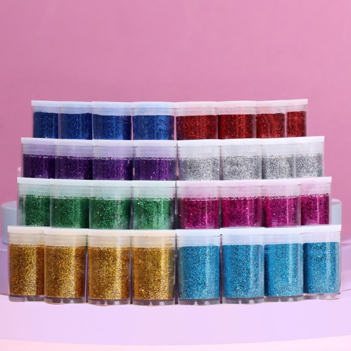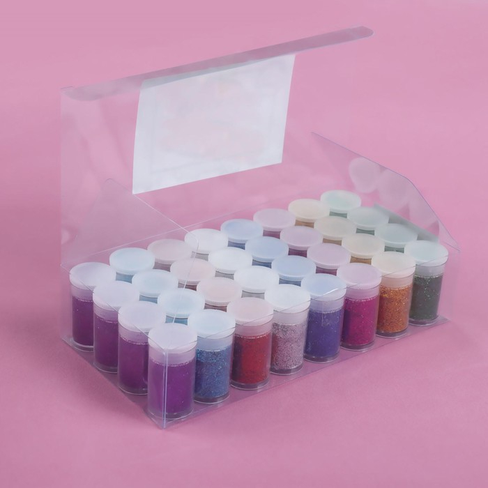 Блёстки для декора, мелкие, набор 32 баночки, в ПВХ - коробке, разноцветные