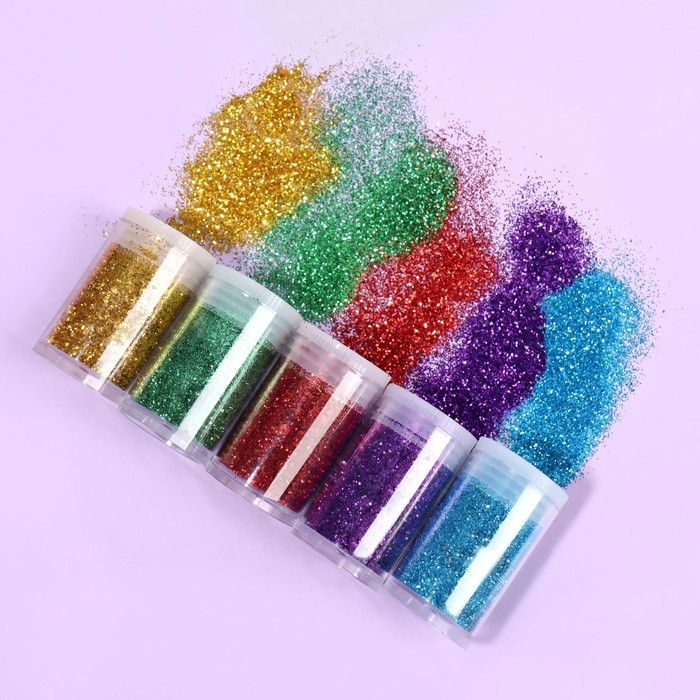 Блёстки для декора, мелкие, 12 баночек, разноцветные