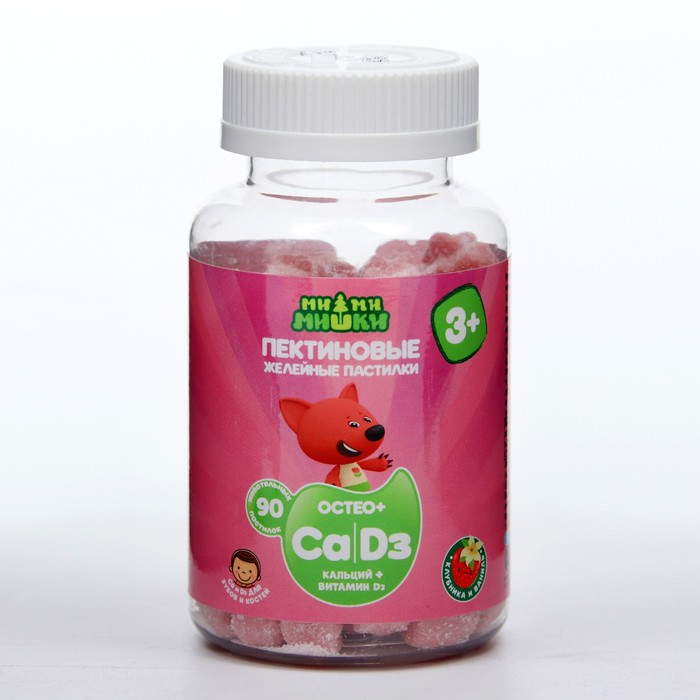 Остео + Кальций и Витамин Д Ми-Ми-Мишки со вкусом клубники и ванили, 90 пастилок по 2 г