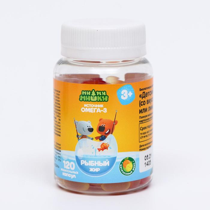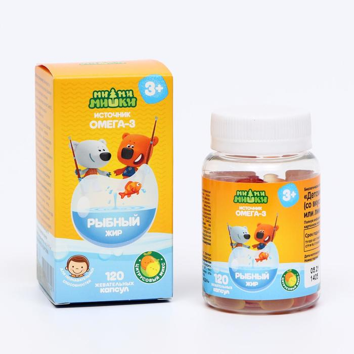 Рыбный жир детский Ми-Ми-Мишки цитрусовый микс, 120 жевательных капсул по 400 мг