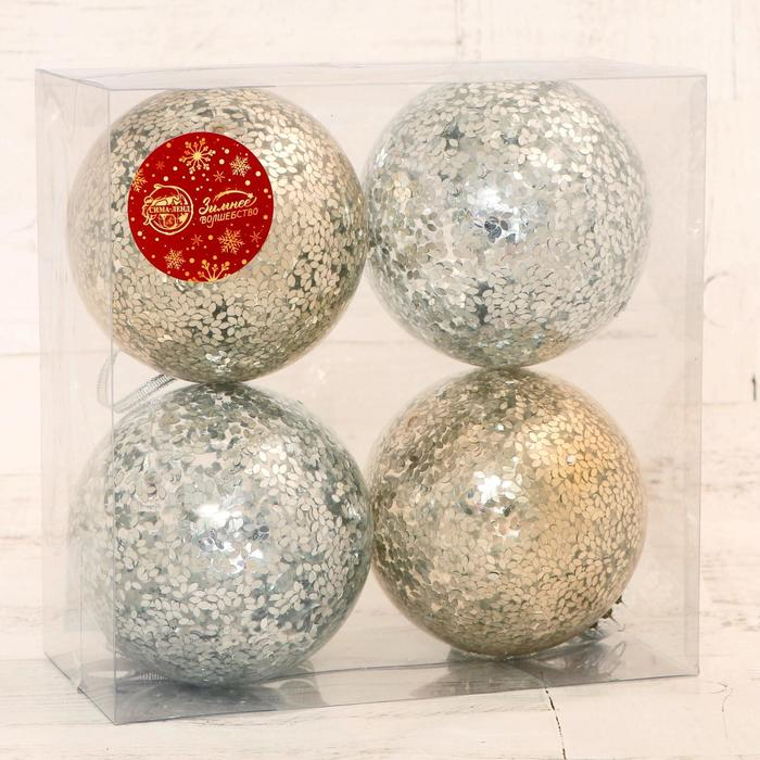 Набор шаров пластик d-10 см, 4 шт "Праздничный настроение блеск" серебро золото
