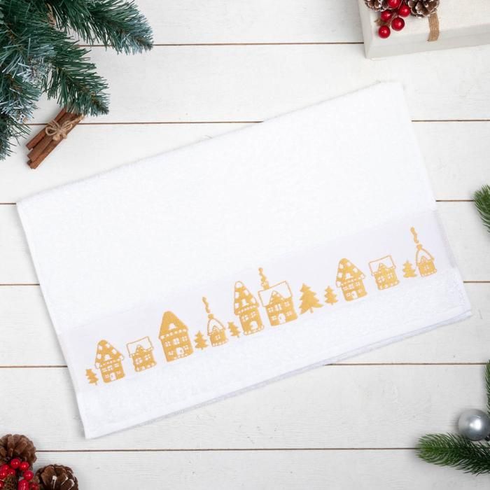 Полотенце махровое «Новый год: Домики» 50х90 см, 100% хлопок, 360гр/м2