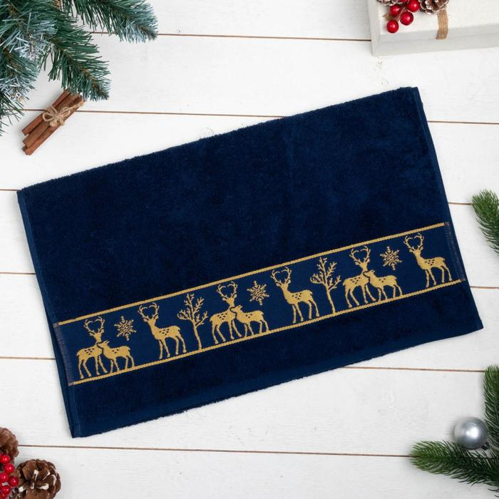 Полотенце махровое «Новый год: Олени» 50х90 см, 100% хлопок, 360гр/м2