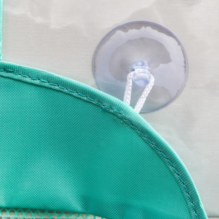 Сетка для игрушек поможет хранить детские принадлежности и игрушки в чистоте и свободном доступе. Изделие выполнено из прочного материала и крепится к стене с помощью двух присосок.