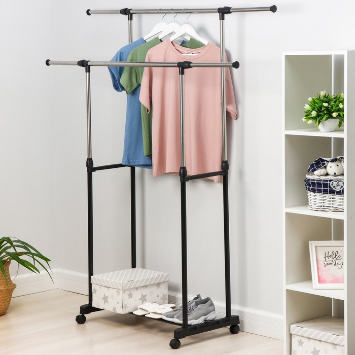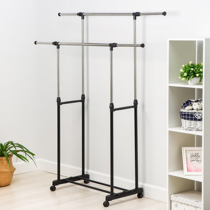 Стойка - вешалка напольная для одежды Доляна, телескопическая, 2 перекладины, 80(145) × 43 × 90(160) см