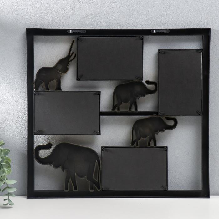 Фоторамка пластик на 4 фото 10х15 см "Четыре золотых слона" чёрный 39х42 см