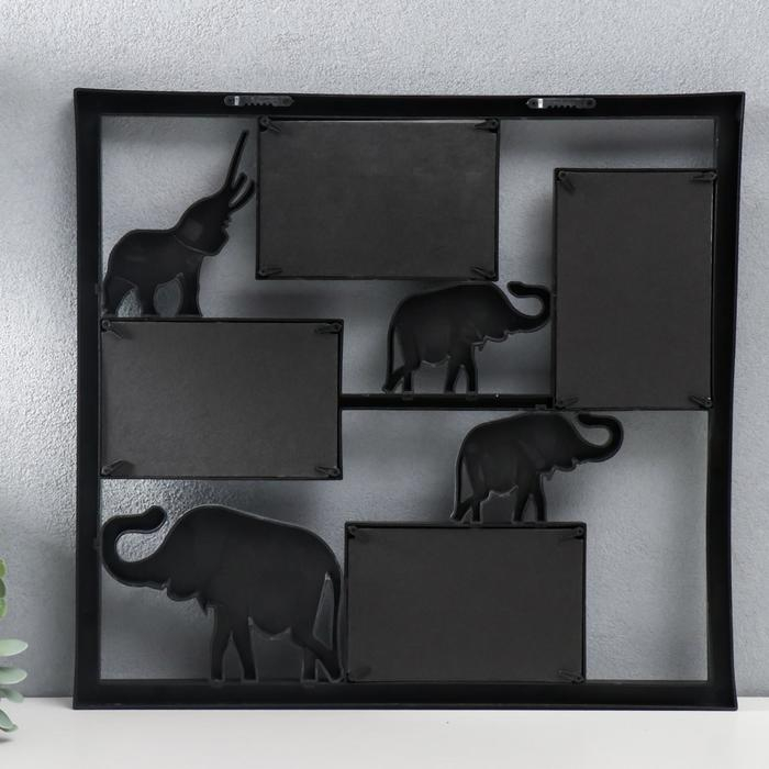 Фоторамка пластик на 4 фото 10х15 см "Четыре серебряных слона" чёрный 39х42 см