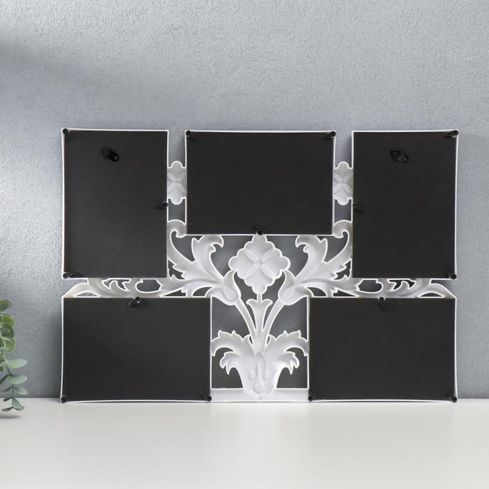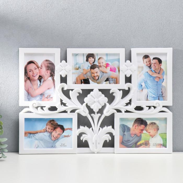 Фоторамка пластик на 5 фото 10х15 см "Листья и медальоны" белый 32х46 см