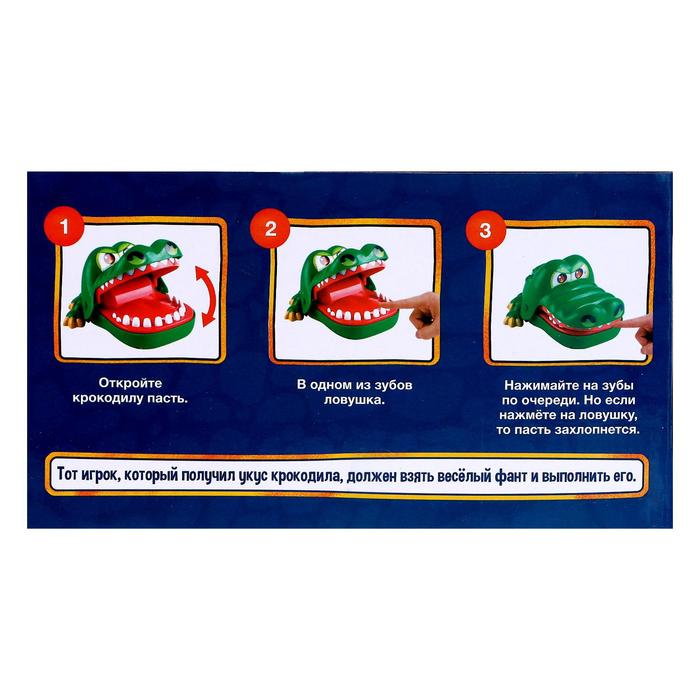 - В одном из зубов крокодила спрятана ловушка. Если игрок нажмёт на ловушку, рот крокодила закроется!