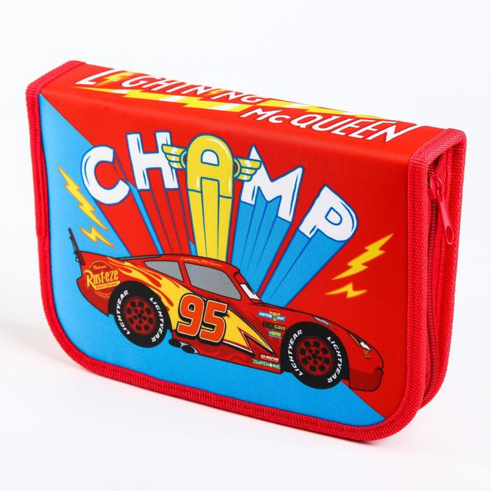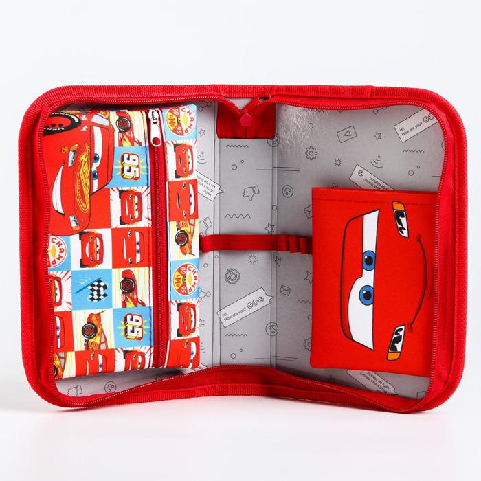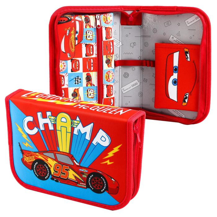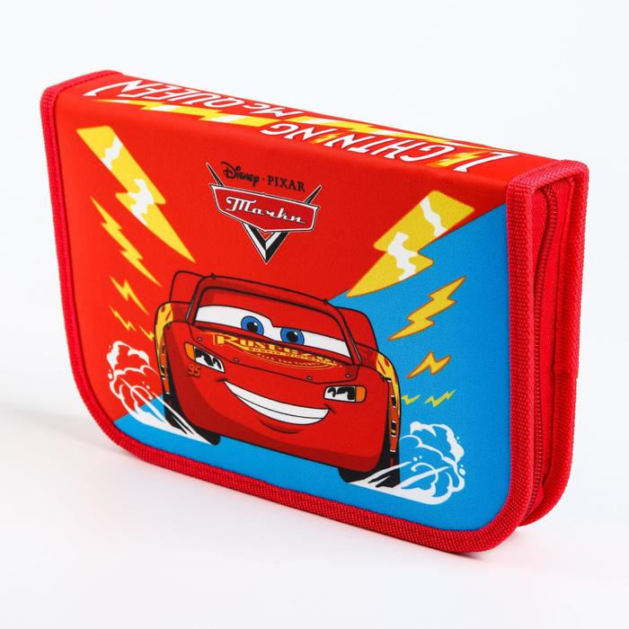Пенал каркасный, 1 секция, 140х210х40 мм, откидной карман, тканевый, Тачки