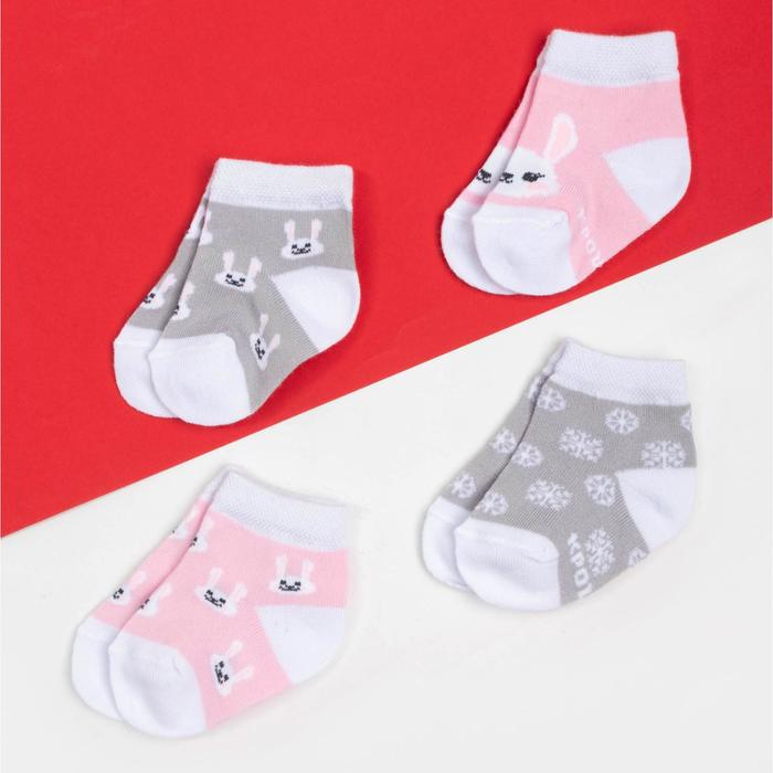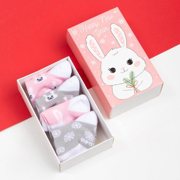 Набор новогодних носков для девочки Крошка Я «Зайчик», 4 пары, 10-12 см