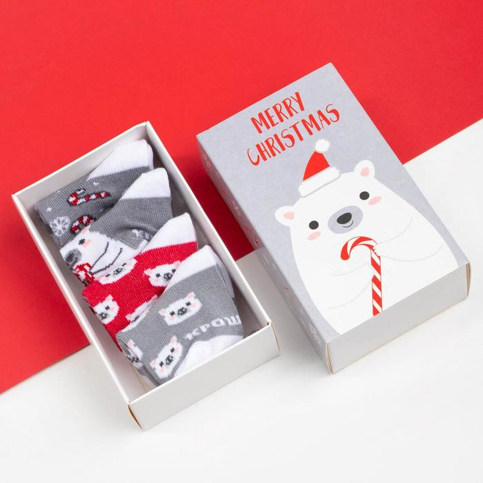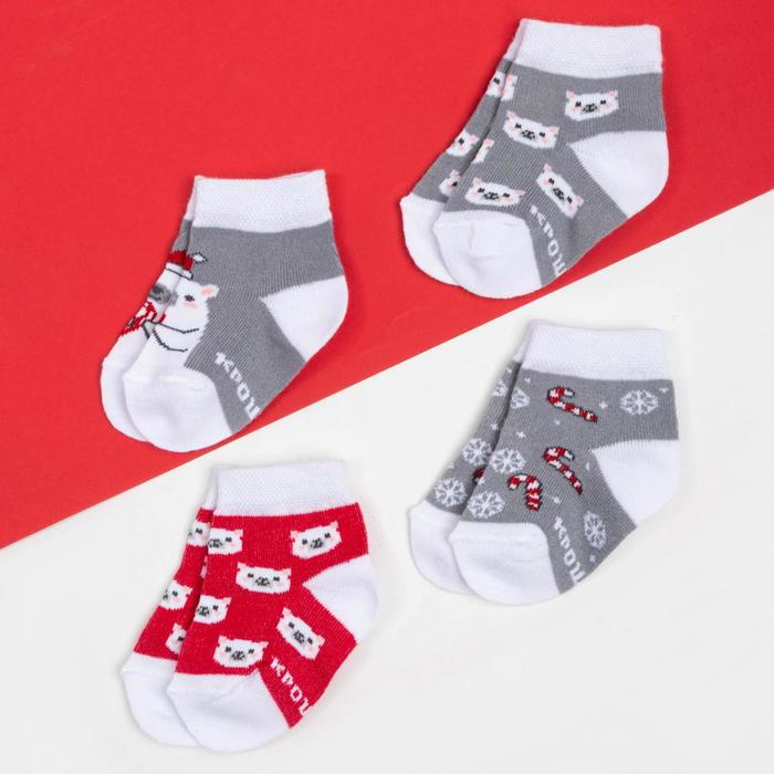 Набор новогодних детских носков Крошка Я «Мишка», 4 пары, 8-10 см
