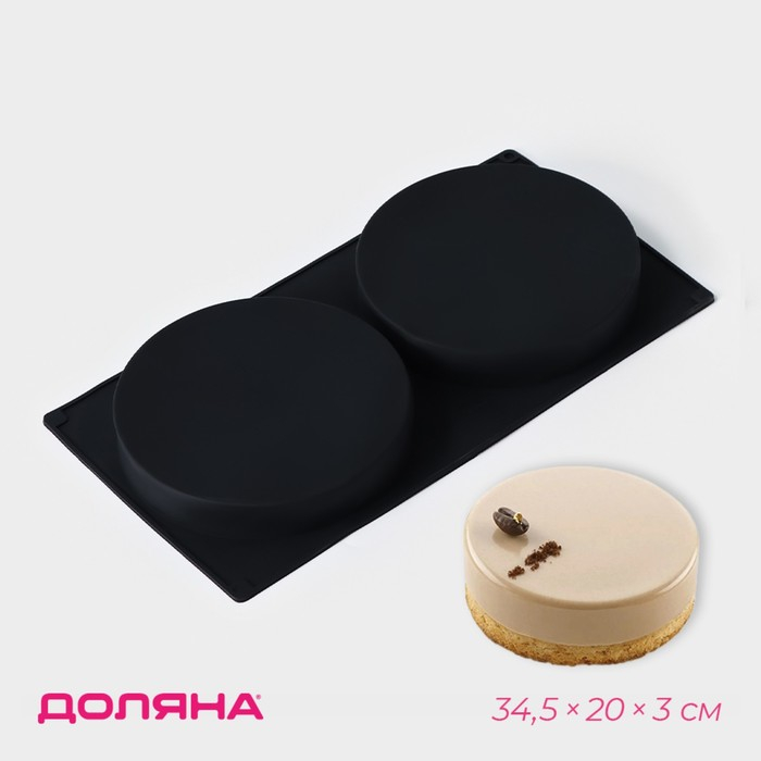 Форма для выпечки Доляна «Бискотто», силикон, 34,5×20×3 см, 2 ячейки (d=16 см), цвет чёрный