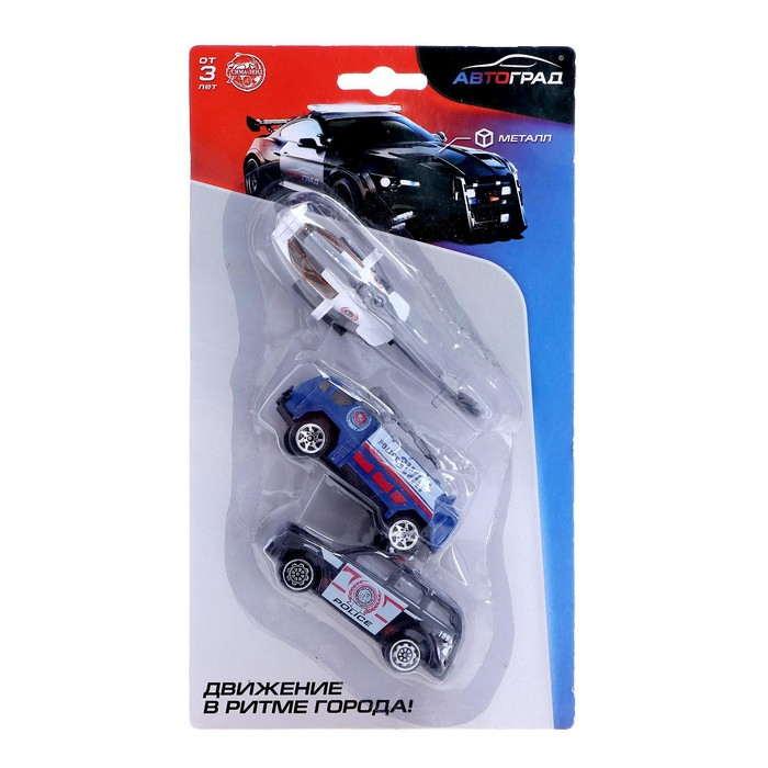 Набор металлических машин «Полиция», 3 штуки, МИКС