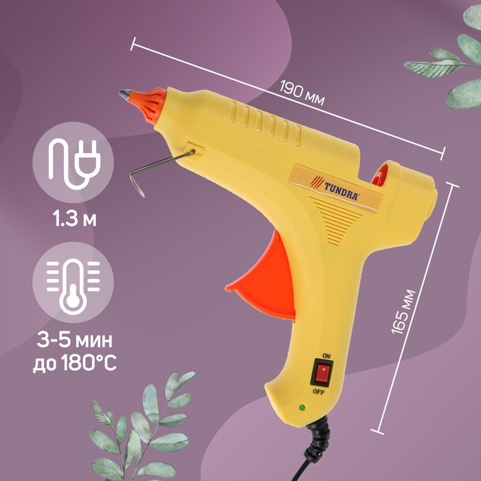 Клеевой пистолет ТУНДРА, 80 Вт, 220 В, выключатель, индикатор, антикапля, шнур 1.3 м, 11 мм