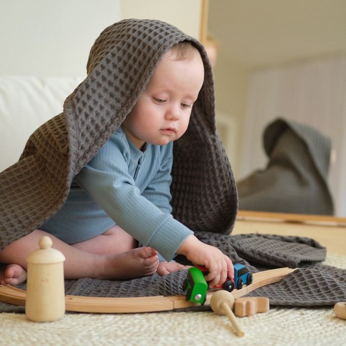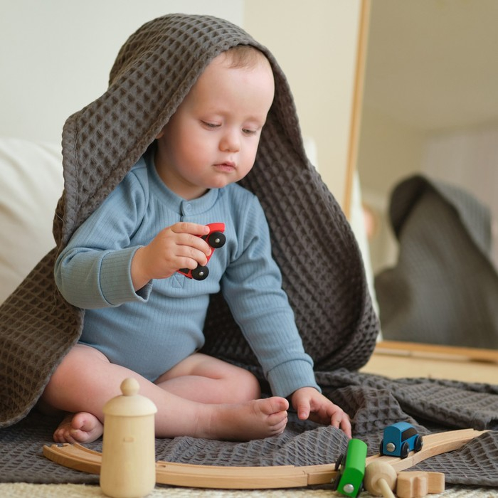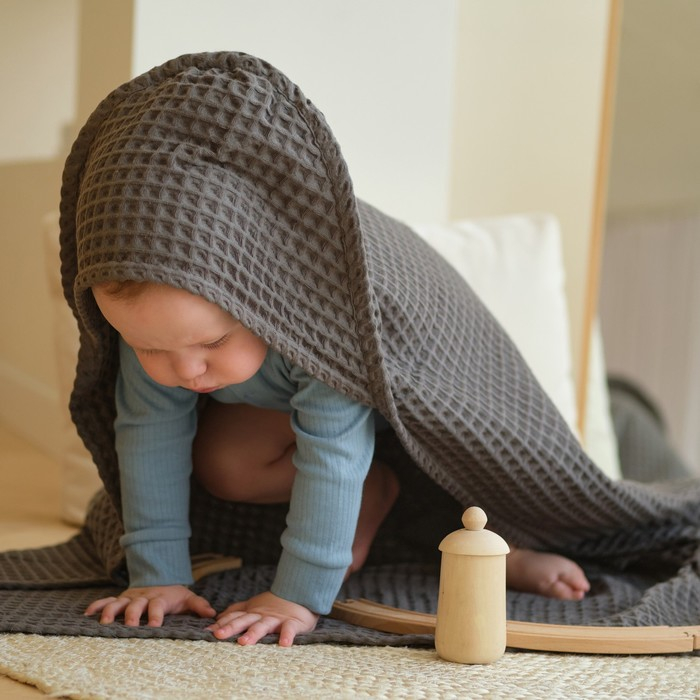 Полотенце уголок вафельное Крошка Я "Boho" 120х120 см, цвет светло-серый, 100%хлопок, 290 г/м2