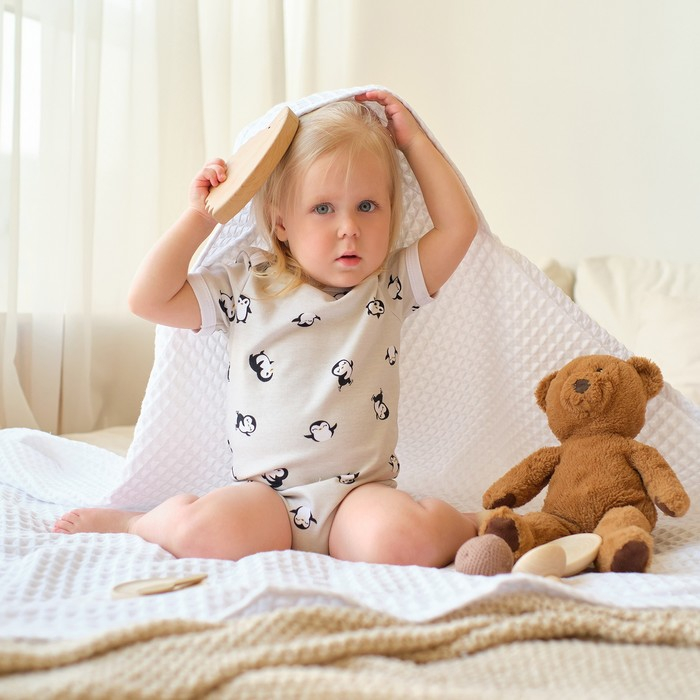 Полотенце уголок вафельное Крошка Я "Boho" 120х120 см, цвет белый, 100% хлопок, 290 г/м2