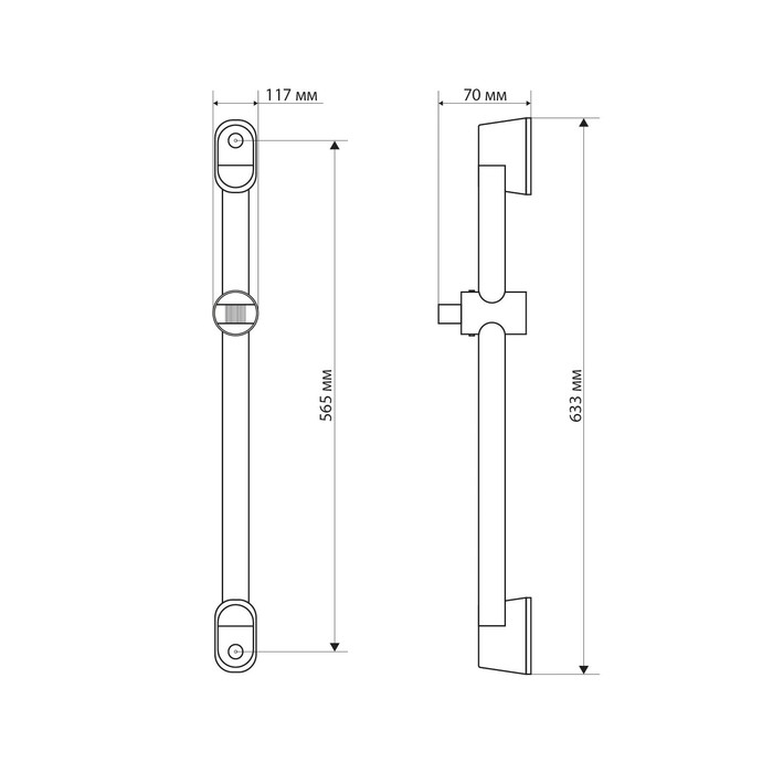 Подходит для установки в душевых кабинах и на стене над стационарными ваннами. Для монтажа штанги на стене потребуется два отверстия. Изделие предполагает стационарное крепление.