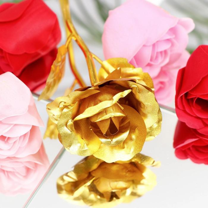 Мыльные розочки цветных оттенков и золотая роза, набор