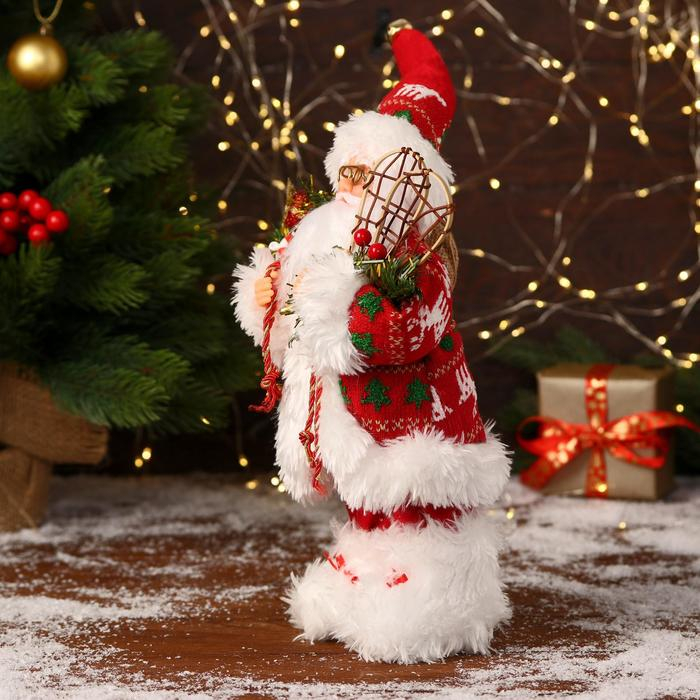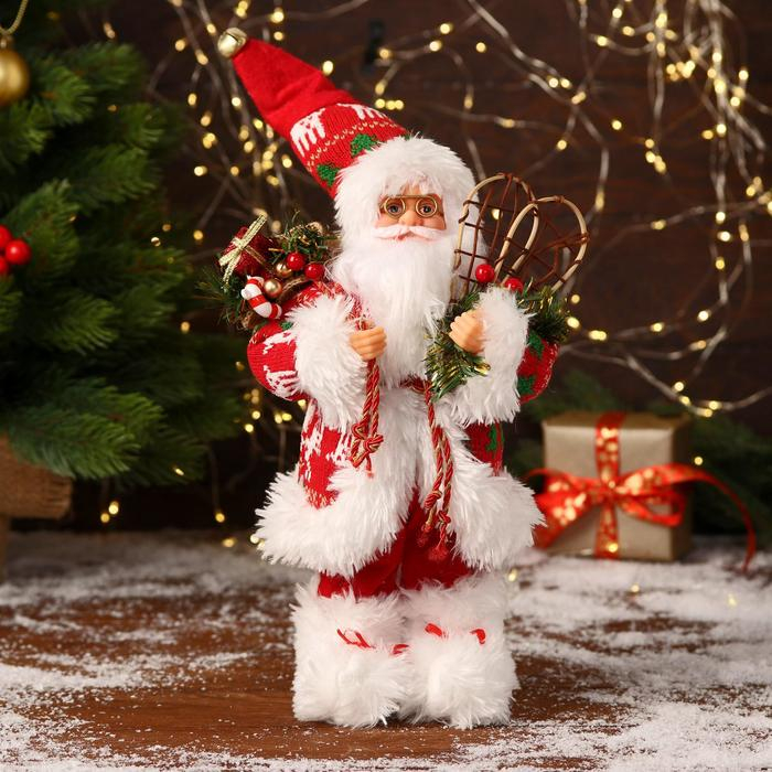Дед Мороз "В красной шубке, колпачке и с подарками" 30 см