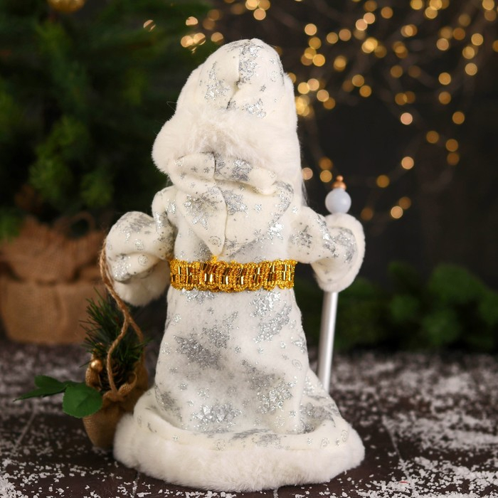 Дед Мороз "В белой шубке, с посохом и мешком" двигается, 12х28 см