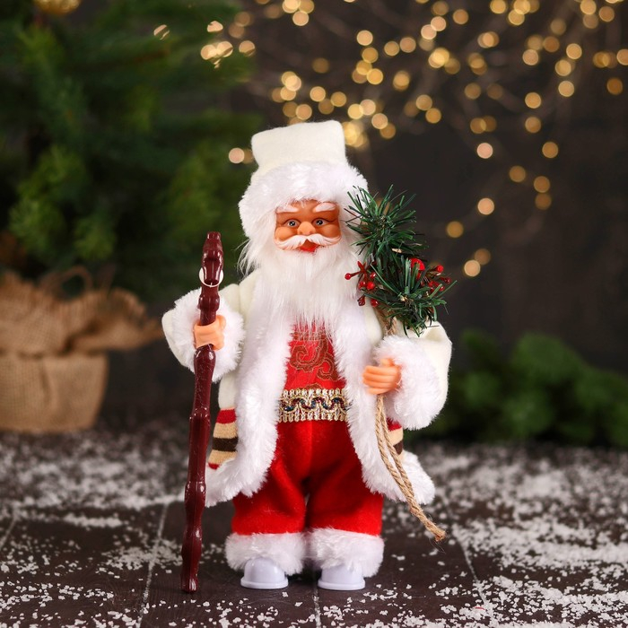 Дед Мороз "В костюмчике с орнаментом, с посохом" двигается, 25 см